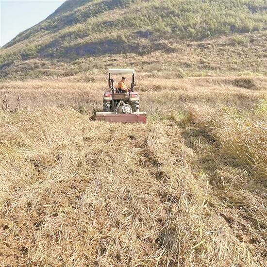 韶关乐昌市云岩镇,农民开着微耕机复垦撂荒地 羊城晚报记者 张文 摄