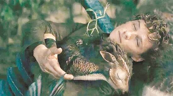 除了出生就被追杀的开场大戏,麒麟的重头戏还体现在终场之前。格林德沃杀了捉来的那只小麒麟,用麒麟血强化了自己的能力,再用魔法让其实已经死去的小麒麟选了他当领袖。但他的阴谋被邓布利多等人保护的小麒麟戳穿——众目睽睽之下,小麒麟单膝跪在了邓布利多面前……