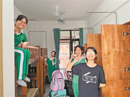 高三年级700余人,此前走读生和住宿生约各占一半。同学们“拎包入住”新校区后都很高兴,感叹新校区条件真好:所有设备都是新的,一个宿舍住6名学生、有2个洗手间、享“热水自由”,宿舍楼还有电梯。