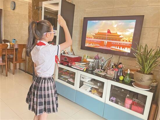 各中小学都很重视学生的体育锻炼,安排孩子在网课间隙做运动。孩子们纷纷把客厅当操场,做广播体操、居家锻炼。