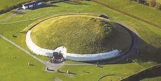 爱尔兰纽格莱墓大约建造于新石器时代的公元前3200年。心形的墓堆由97块镶边石块围成,每块石块上都雕刻有谜一样的图案。冬至那天黎明,会有一束阳光穿过顶部开口射入墓室,这一现象会持续17分钟左右。