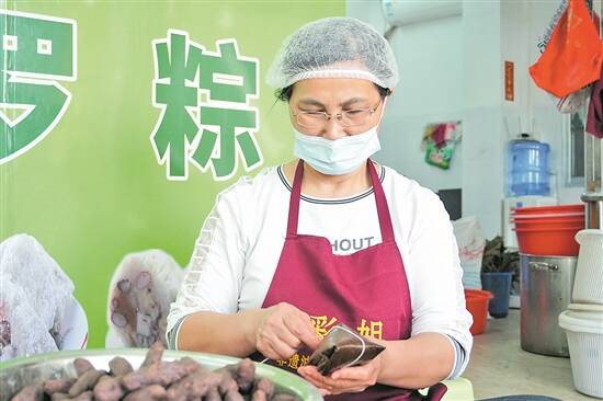 陈玉彩在包制粽子
