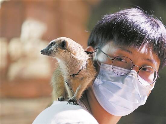 动物幼崽和大小游客亲密互动 羊城晚报记者 邓勃 摄