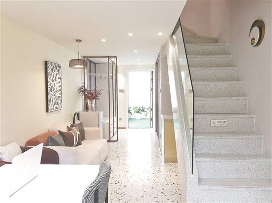 从旁边的非实景样板房可见,小复式单位层高为4.5米,有带中空客厅和直接间隔成两层空间两种设计;平层单位为双钥匙户型设计,即把4.5米层高平均分成两层,每层一套单位,每套单位层高为2.25米,从一个大门进去后分两个入口进入两套单位,据说这是为了将出租收益最大化的设计。情景样板房进行了个性化装修,对市民有一定的吸引力。但记者也发现,这些房子的一些卫生间甚至是卧室都无法自然采光通风,2.25米的层高显得相对压抑。