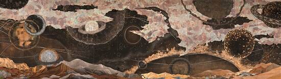 本科展这边,工艺美术学院陈瑶、陈永基的巨幅作品《星燃》将大漆材质的运用发挥到某种极致。而有意思的是,他们用的这一材料具有悠久历史,但表达的却不是传统的内容,而是宇宙星空,给人以富有哲理的思考。