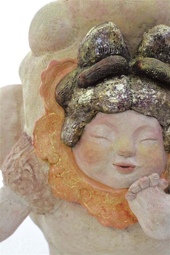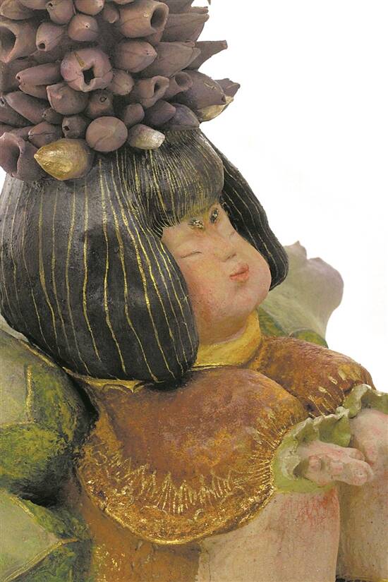 研究生展这边,跨媒体艺术学院刘亚兰的《鸟在安静的地方叫,我在每一个地方把脚贴到耳朵上》是她深入大南坡美育实践的部分成果,从中可以看出她这种实践的趣味性和鲜明的在地性。王珊的《十四日谈》跟隔离生活有关,但她在造型和色彩上却处理得很玄幻、具有电子感,别有一番意趣。