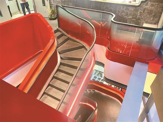 除了菜式的研发,新莲香楼也建立了一套专属的老字号标识。如今,走进莲香楼,红色与绿色的大面积撞色,颇具复古风格,跟随着旋转楼梯移步换景,往下望,曲面绿色玻璃环绕的大厅仿佛是一个荷塘,桌上的餐具自带“莲花”元素。
