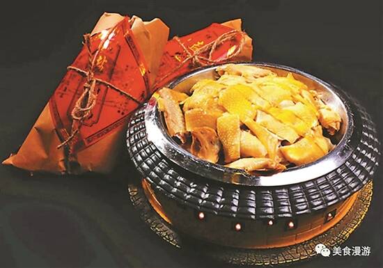 客家盐焗鸡是承德楼的招牌菜。它的盛器就像一座客家土楼,底下是烛炉。