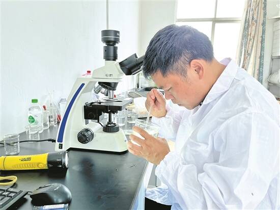 在那之后,他经常关注有关禾虫的资料。“当时阳江没有禾虫苗的开口饵料和中间培育阶段饲料,所以无法实现人工育苗。”陈兴汉得出这一结论后,便抱着“做阳江禾虫人工育苗第一人”的信念,开启了漫长的科研之路。