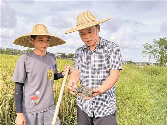 “禾虫的生长周期较长,基本上要一年甚至两年。每一年我们都是轮捕轮放,大致到了第三年,可以达到投产的高峰。按每亩平均300斤,每斤100元来算,每亩田禾虫收入可以有3万元。此外,高品质水稻一亩收益也在5000元以上。”陈兴汉表示,禾虫在稻田中能促进土壤改良,促使畜禽粪便及秸秆还田利用,水稻又可以为禾虫提供营养和庇护环境。