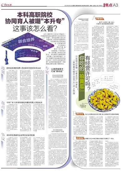 近日,南京审计大学与江苏省内一所高职院校联合培养本科生的项目冲上了“热搜”。项目因录取分数比本科院校低,却颁发与普通本科生无异的毕业证和学位证,引发南京审计大学部分学生不解,自嘲为“本升专”。无独有偶,广东财经大学一协同育人项目也引发热议。本科高校与高职院校“协同育人”是怎样的模式?今年广东高校开设这类项目的情况如何?为何引来质疑的声音?应该如何理性看待?羊城晚报记者对此做了调查采访。
