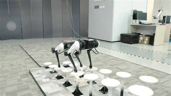 在腾讯Robotics X实验室为Max设置的测试场景中,Max需要快速通过一个阵列全长10米,高0.8米(约为Max身高的2倍)高低起伏的梅花桩阵列。