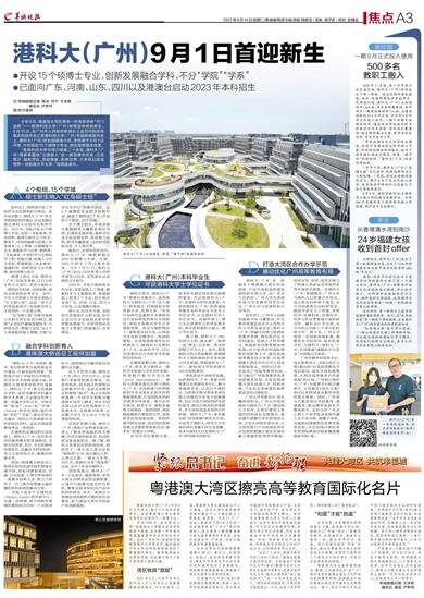 香港科技大学(广州)今年6月正式成立,将于9月迎来首批学子。这是粤港澳大湾区教育向国际化迈进的又一重要节点。