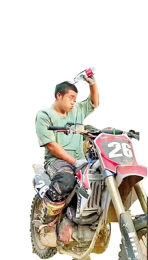 龙杰 近日,重庆北碚区歇马街道突发山火,许多人自发骑着摩托车支援,重庆小伙“龙娃子”就是其中一员。他两天两夜运送物资,骑着摩托车来来回回地在狭窄崎岖的山路间飞驰,为保持清醒往头上浇水的视频感动了众多网友。“龙娃子”本名龙杰,今年22岁,是一名外卖骑手。22日中午,他听说有些救援人员还没吃饭,就骑着摩托车赴一线运输物资。 视频截图
