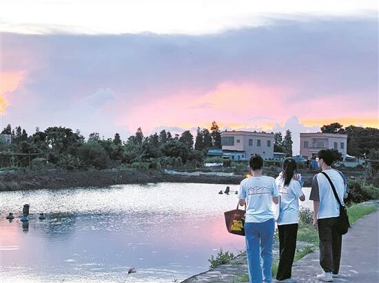 队员在调研返回途中欣赏中山六沙村田园美景 红延队提供