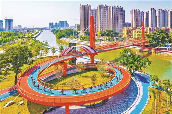 今年春节前,位于江门市江海区的下沙人行天桥、下沙公园二期文昌沙公园以及礼乐河纸厂段两岸正式向市民开放,下沙公园再添新景。行车道、慢跑道、散步道、绿道贯通;疍家广场、朗读亭、健身设备、儿童游乐设备、休闲绿地,配套设施一应俱全;公园内还专门为江海区儿童建设了免疫公共服务中心,让小孩子能在优美的环境中接种疫苗……