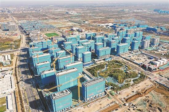 机器轰鸣、塔吊林立,金秋的河北雄安新区沉浸在热火朝天的建设氛围之中。