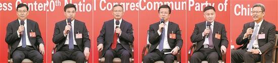 代表团新闻发言人介绍各自代表团学习讨论二十大报告情况,并回答记者提问(拼版照片) 新华社发