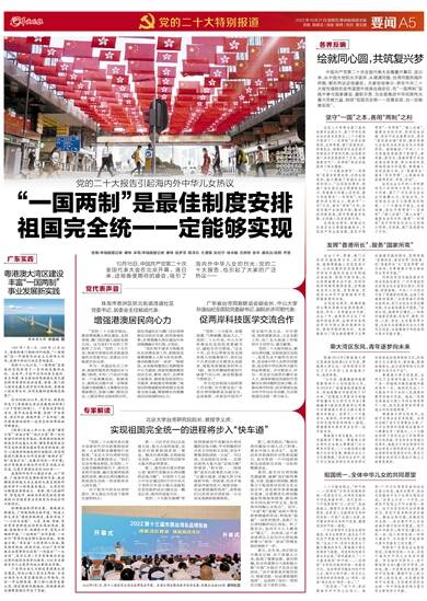 中国共产党第二十次全国代表大会隆重开幕后,连日来,从中国大地到大洋彼岸,从港澳同胞、台湾同胞到海外侨胞,都在热议这场盛会。大家纷纷表示,将在中共二十大报告描绘的宏伟蓝图中找准自身定位,在“一国两制”实践中参与国家建设、履职尽责,为全面推进中华民族伟大复兴贡献力量,相信“祖国完全统一一定要实现,也一定能够实现”。