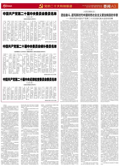 党的二十大是在全党全国各族人民迈上全面建设社会主义现代化国家新征程、向第二个百年奋斗目标进军的关键时刻召开的一次十分重要的大会。大会选举产生了新一届中央委员会和中央纪律检查委员会,通过了关于十九届中央委员会报告的决议、关于十九届中央纪律检查委员会工作报告的决议、关于《中国共产党章程(修正案)》的决议。这是一次高举旗帜、凝聚力量、团结奋进的大会,在党和国家发展进程中具有极其重大的历史意义。党的二十大作出的各项决策部署、取得的各项成果,必将对全面建设社会主义现代化国家、全面推进中华民族伟大复兴,对夺取中国特色社会主义新胜利发挥十分重要的指导和保证作用。