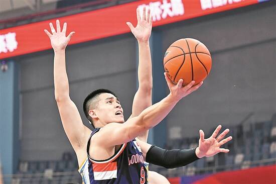 广州队球员陈盈骏在比赛中上篮 新华社发