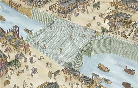 明代州桥复原图 开封市文广旅局 李琛 手绘