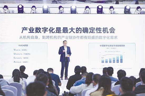 在蒋国飞看来,产业数字化协作是一种实现手段,也成为最大的确定性机会,而这背后所面临的三大基础问题是数据安全、流转机制、协作效率。因此,在以数助实的发展中,寻求单点技术突破不再是单一命题,科技产品应成为各行业上下游之间的可信黏合剂,促进交易效率的大幅度提升,由此产生商业的新形态、新机遇、新增长,大企业活得更好,小企业更多受益。