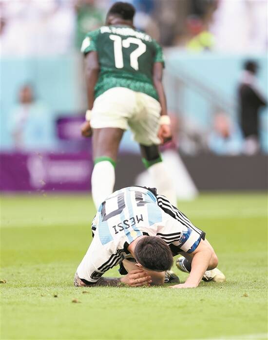 随后,沙特筑起了一道坚不可摧的后防线,梅西和他的球队一次又一次地无功而返。在罚丢了一个位置不错的任意球后,梅西无奈地摇了摇头转身往回走。比赛结束后,一直处于亢奋状态的阿根廷球迷开始垂头丧气,他们在开赛前为球队创造了比对手更火爆的氛围,但他们的球队却没能对得起他们的努力。