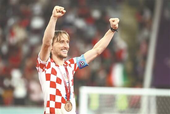 悠扬的笛声回响在波斯湾畔,莫德里奇上演了他在世界杯的最终章,但他还没有打算告别自己心爱的国家队。“我想先踢完欧国联的比赛(克罗地亚已闯入四强),到那时候再看看吧。”当在赛后被问到是否打算从国家队退役时,莫德里奇如此回答道。而克罗地亚主帅达利奇更是对爱徒充满信心:“他(莫德里奇)可以踢下一届欧洲杯!”在达利奇看来,克罗地亚在本届杯赛取得的成就已经足够伟大:“我为我的球队和我的国家感到骄傲,我相信我们整个国家的人都在庆祝这场胜利。”