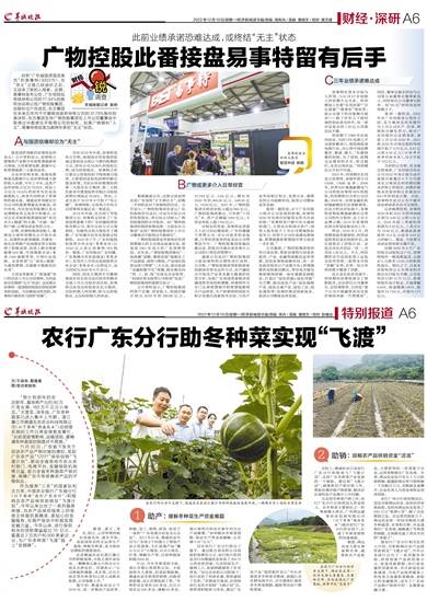 据农行广东分行相关负责人介绍,为积极响应农产品保供助销及“飞渡计划”,今年以来该行出台了一系列服务举措,持续创新产品和担保方式,放宽贷款期限,执行更优惠的贷款利率,并开辟绿色审批通道,为农产品保供链条上的各类主体提供更精准、更贴心的金融服务,成为了广东农产品稳产保供中的一支重要金融力量。