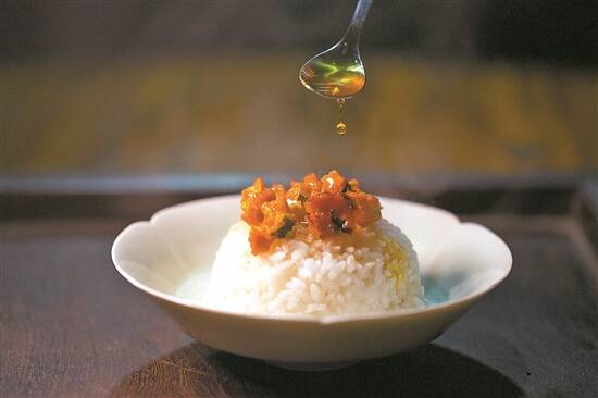 一大勺猪油,文火化开。倒入蟹黄,只加一点点盐和生姜,轻轻翻炒。等到猪油也浸染上蟹黄的霸气色彩之后,秃黄油这才算是得了。这时候 需要一小碗热气腾腾,清清爽爽的白米饭。舀上一勺刚做好的,油汪汪金晃晃的秃黄油。浇在米饭上,用勺子背碾压上去。蟹黄即刻粉糯糯地化开去,跟米粒纠缠在一起,上好的秃黄油要黏在米饭上,是那种油汪汪的感觉,然后就用勺子粗暴地拌起来,不需要章法,一下两下三下……一勺入口,厚重而通透的幸福,就是这碗醉生梦死的秃黄油拌了。