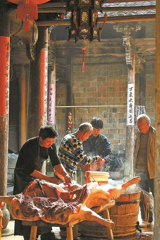 在乡村,几乎家家户户都养有年猪,猪肉是年夜饭的主角