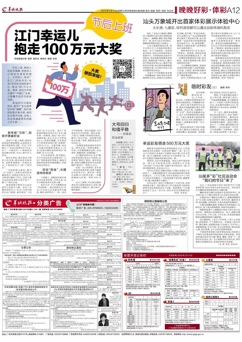 节后上班 江门幸运儿抱走100万元大奖