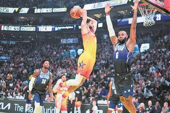 北京时间2月20日,NBA2022-2023赛季全明星周末在盐湖城正式落下帷幕。在当天举行的全明星正赛中,凯尔特人当家球星塔图姆全场爆砍55分10篮板6助攻,捧得科比·布莱恩特杯(AMVP,全明星最有价值球员奖)的同时,率领“字母哥”队以184比175击败詹姆斯队。
