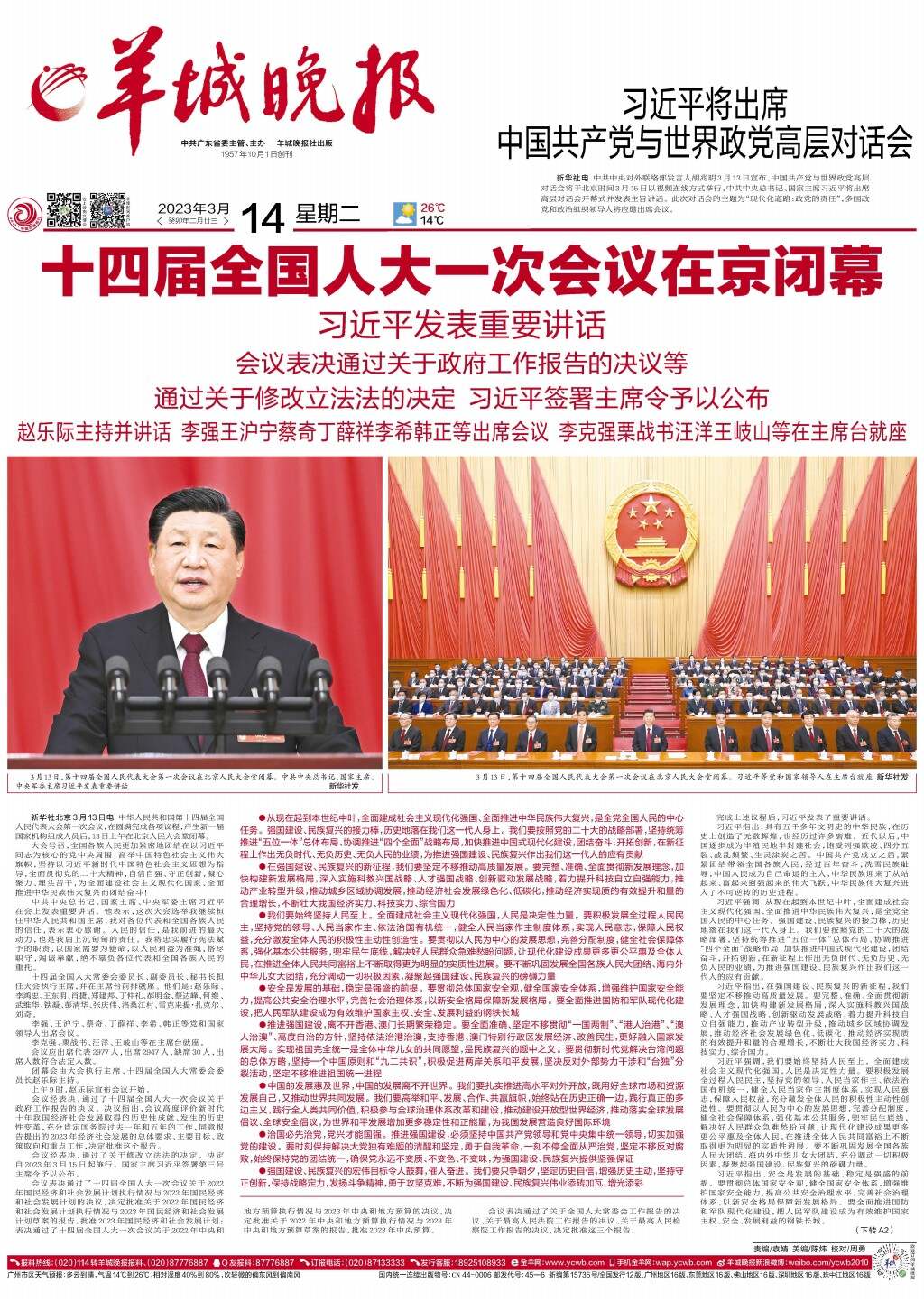 十四届全国人大一次会议在京闭幕