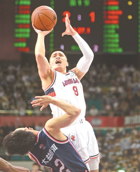 广州队核心球员陈盈骏(上)在比赛中投篮 新华社发