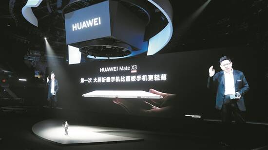 据了解,华为折叠屏新旗舰Mate X3成发布会亮点。从外观来看,手机采用了四曲机身,轻薄度更进一步,和直板机相差无几。同时,华为在卫星通信、轻薄、软件适配等方面带来全面升级。余承东表示,折叠屏是大势所趋,我们解决了折叠屏的重量问题,将平替直板机。