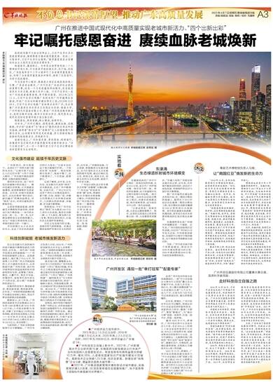近年来,广州牢记嘱托、感恩奋进,赓续血脉、老城焕新,守护好“老城市”为“新活力”提供的历史积淀和坚实基础,涵养着“新活力”为“老城市”注入的蓬勃朝气和源头活水,让老城市积厚流光的底蕴、历久弥新的魅力在新时代绽放新活力、实现新作为。