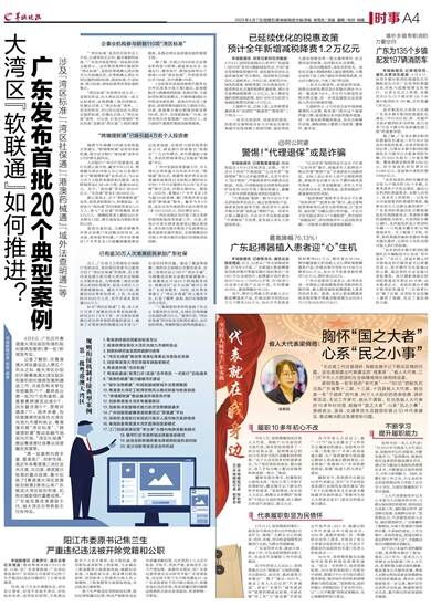 在今年省人大会议上,她“一口气”向大会提交了4件有关交通建设的建议,包括将台开—珠三角枢纽(广州新)机场高速公路、大广海湾旅游专线高速公路纳入省高速公路网规划,以及把新广铁路纳入广东省铁路网规划,助推“轨道上的大湾区”建设。