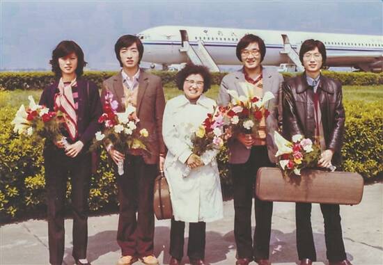 1985年3月,上海四重奏创始成员在英国比赛获奖后回到北京首都机场