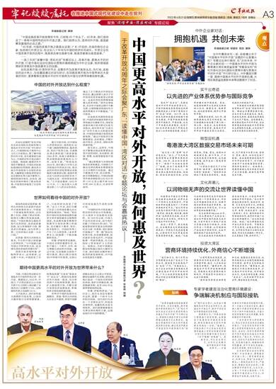 “我们和日立、西门子等30多家跨国企业在广东成立了合资公司,推动更多全球高端产业‘走进’广州。”专题会议上,关于企业如何助力粤港澳大湾区推进高水平对外开放的问题,广州工业投资控股集团有限公司副总经理谢勇给出了他的“解法”。