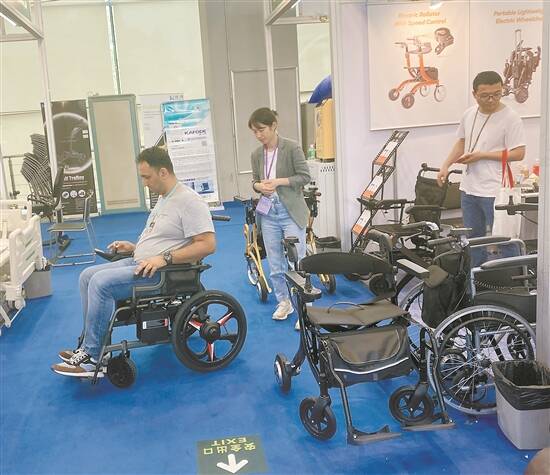 足步医疗是一家专注于生产智能电动轮椅的企业,今年带来了多款面向老年人的智能代步车,可方便老年人在5公里范围内的出行。杨文表示,“银发经济”展区的设立,令相关老年人产品的分布更加聚集,客户更容易找到他们,从而使得参展商获客也更加容易。“以我们自己为例,我们今年的客户更加多元,除了传统的东南亚客户之外,还多了很多欧洲客户。之前我们展区藏在医疗用品专区里,很多客户表示难找,今年很多客户则是根据展区名字直奔而来。”杨文说。