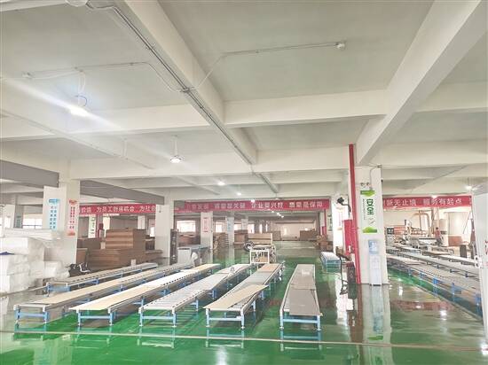 接着,记者又被带到办公楼后面的材料展厅以及位于四楼的生产车间参观。这两处厂房面积很大,但里面堆放的材料并不多,只有几名工人在劳作,并没有大厂的风貌。有些堆在货架上的材料已经落满灰尘。记者表示,虽然进行了参观,但作为外行也看不出来什么问题。何经理说:“你只要看到我们公司有规模有设备就行了,不是挂羊头卖狗肉。你所要了解的不就是这些信息么?防止别人把你的钱卷走跑路。”