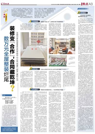 举报人称,遭遇陷阱后,他们虽手握大量音视频证据,但维权之路艰难,当初签下的“合同”成为“拦路虎”。有举报人表示,当初签合同时,他们发现了合同条款与该公司口头承诺不一致,不过,对方解释说,因为他们是“特殊合作”的样板房,整个区域仅此一家,并非普通装修合同,还说不需要纠结合同上的文字,“公司规模那么大,每天客户不断,不用有任何顾虑,效果图是什么样,你们家就是什么样,一站式服务,包工包料,45天就可以装好一套房”。然而,等到维权时,对方就拿出合同,跟消费者抠字眼。