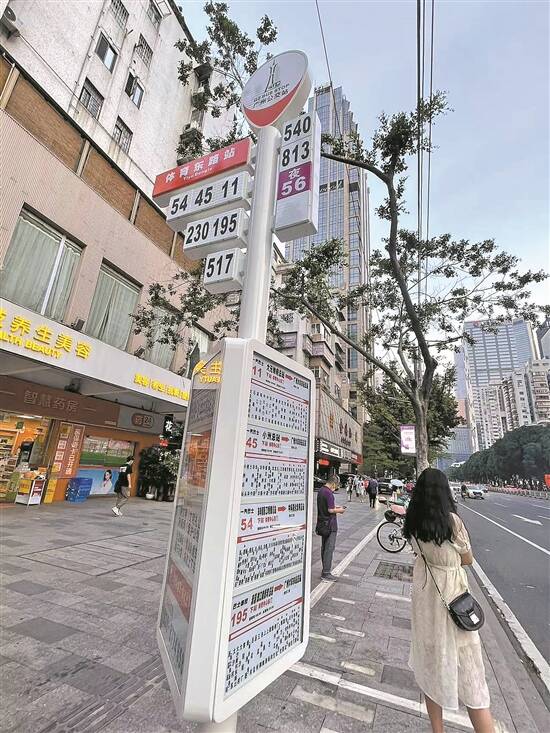乘客莫女士每天在天河邮局站通勤,她早已注意到站牌的变化,“这个站原来没有遮阳棚,只有一个绿底站牌,相较而言新型站牌架造型很好看!”莫女士说道。