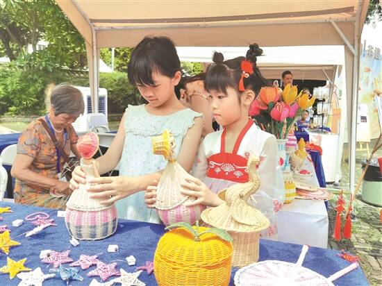 小朋友体验南海藤编 羊城晚报记者 景瑾瑾 摄