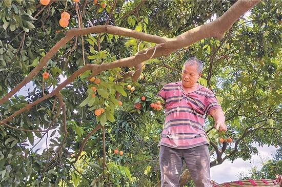 6月12日上午,在樟木头镇樟洋社区的一个荔枝园里,果农吴新其正和家人汗流浃背地采摘客人在网上下单的桂味。抬头望去,一串串红红的桂味沉甸甸地挂满树梢,让人垂涎欲滴。这里的桂味、糯米糍已经上市一周,通过网络渠道销售了2000多斤。由于上市较早,再加上果园的荔枝果肉厚实饱满,品质上乘,价格也不错。其中,桂味15-18元/斤,糯米糍20-25元/斤。