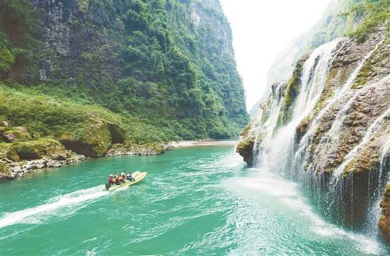 游人在张家界市茅岩河风景区体验水上漂流项目 新华社
