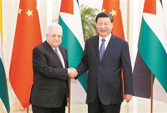 习近平指出,中巴两国是相互信任、彼此支持的好朋友、好伙伴。中国是最早承认巴勒斯坦解放组织和巴勒斯坦国的国家之一,始终坚定支持巴勒斯坦人民恢复民族合法权利的正义事业,推动巴勒斯坦问题早日得到全面、公正、持久解决。中方支持巴勒斯坦成为联合国正式会员国,将继续在多边场合为巴方仗义执言、主持公道,愿继续向巴方提供力所能及的援助,帮助巴方缓解人道主义困难、开展重建。中方愿同巴方以建立战略伙伴关系为契机,继续在彼此核心关切问题上坚定相互支持,全面推进各领域友好合作,深化共建“一带一路”合作,加快中巴自由贸易协定谈判,加强治国理政经验交流,赓续传统友好。