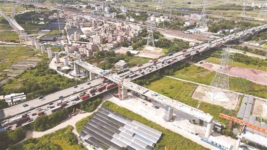 羊城晚报讯 记者李志文,通讯员吕翀、邓联旭、周佳飞摄影报道:7月9日,由中国铁路广州局集团建设、中铁二十五局施工的广州白云站枢纽配套联络线——京广高铁联络线一号特大桥主跨208米连续梁顺利合龙,标志着全线连续梁全部合龙,全线架梁铺轨通道实现贯通,为加快后续施工进度、保障白云站枢纽年底达到开通条件奠定基础。
